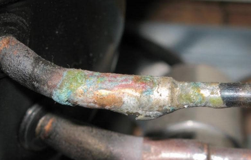 - вмятины/губки на трубопроводах или трубках, проходящих через кондиционер;